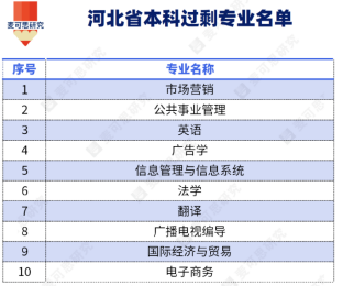 12月21日,麦克思发布关于各省“过剩专业”名单,其中河北省本科过剩专业名单如下: